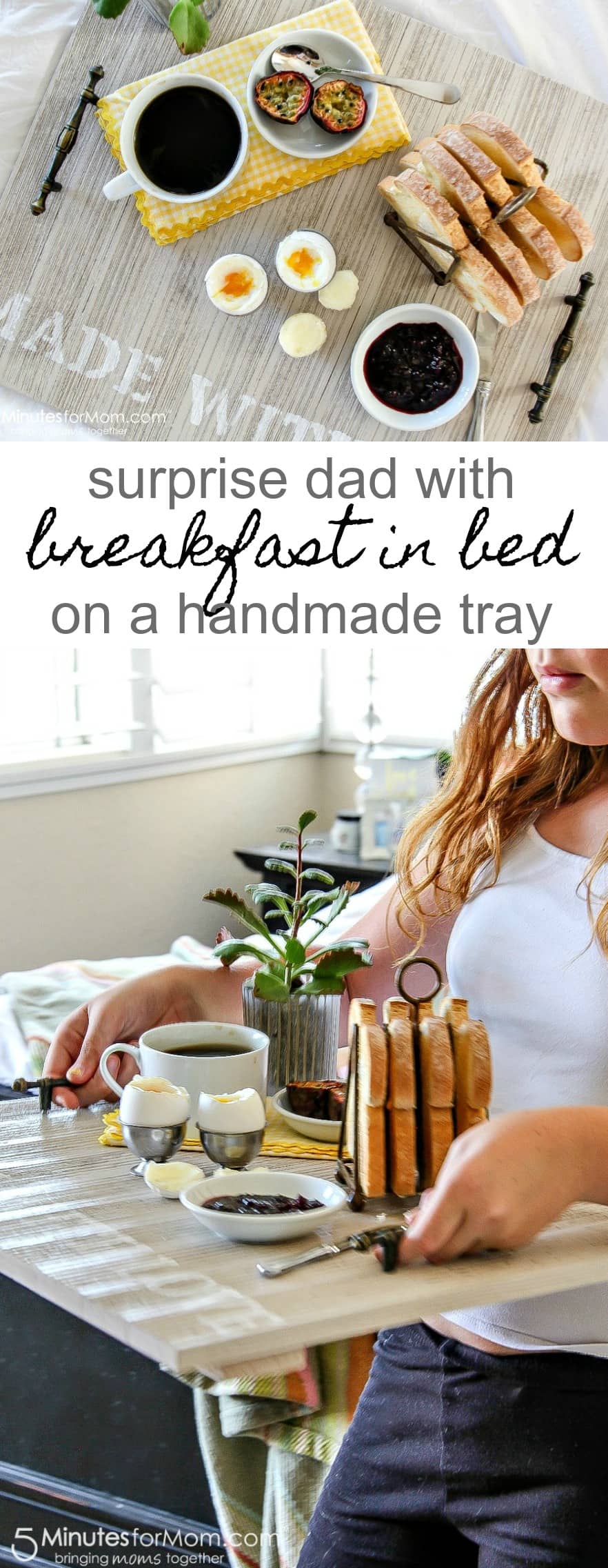 Dad is going to absolutely love this special breakfast in bed on Father’s Day. Your kids will be so excited to present him with this handmade wooden breakfast tray and serve him breakfast.