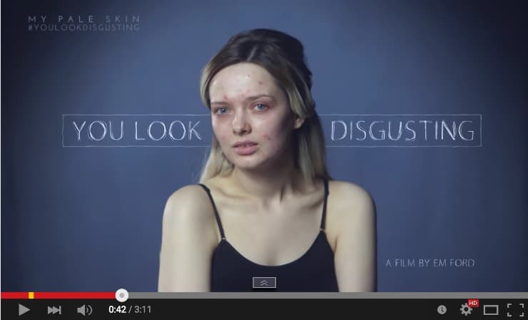 If you’re a girl with serious acne, it’s hard enough to walk out the door without wearing makeup… I can’t imagine the inner strength it takes to show millions of people your scarred face and have them continually spew disgust at you.
