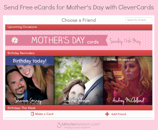 Using CleverCards, in only a couple minutes I sent a birthday eCard to my friend Louise on Facebook and scheduled a Mother’s Day ecard to display on my Mom’s Facebook page on Mother’s Day. I also had a physical card mailed to her for only a few dollars.