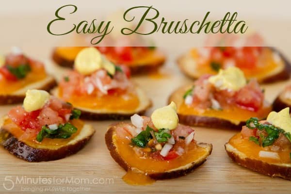 [Tweet “Easy Bruschetta on Pretzel Bread Crisps w STACY’S Herbed Baguette Crisps #Recipe”]