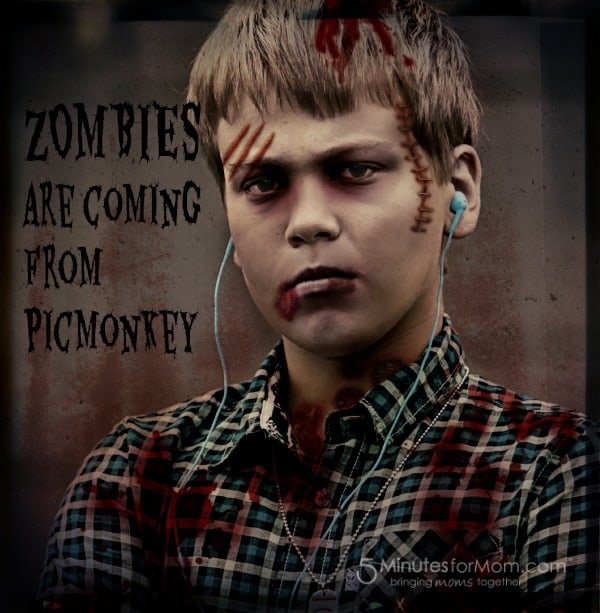 For the last few years my son my has been a zombie for Halloween. It really is the simplest, cheapest costume for a tween boy. And while I have tried my best to make him look as “undead” as possible before he heads out trick or treating with his best friend, I must say, it was far easier to give him the zombie treatment at PicMonkey.