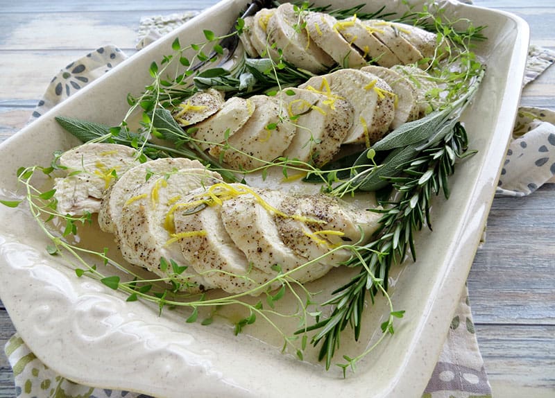 The lemon, butter, and olive oil keep the chicken nice and moist and add tons of flavor.