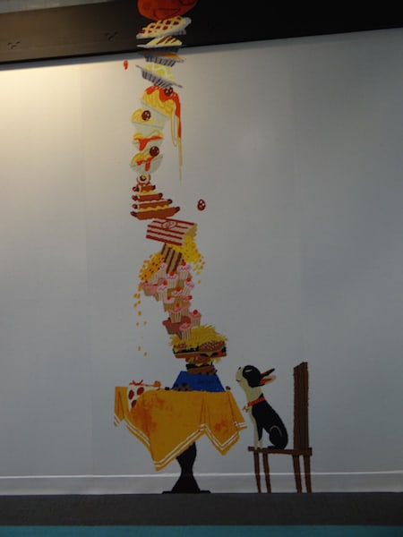 One of the moments that was removed from the short that Patrick enjoyed was a scene where Winston was on the table eating.  He loved that feeling of the shot because it was a party atmosphere. There is a great feeling for a dog to be promoted from the floor, to the chair to the table.  However, John Lasseter felt that people may think that it was gross to see a dog on the table eating.