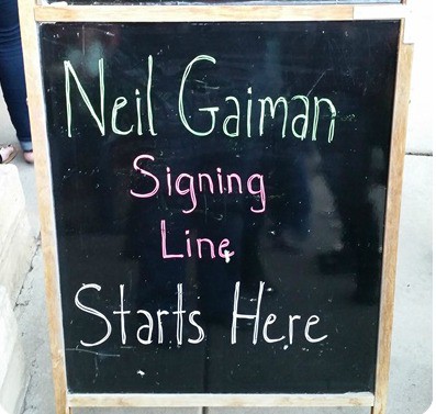 Have you ever wondered what it’s like to attend the signing of an author you admire? When I saw that a local bookstore won a signing by Neil Gaiman, I debated if I should go. I knew I’d have to get there early, be prepared with food and entertainment, and wait in a potentially long line. But I figured that unemployment has its advantages, so I pre-ordered his new book, Trigger Warning: Short Fictions and Disturbances, and ensured my place in line.