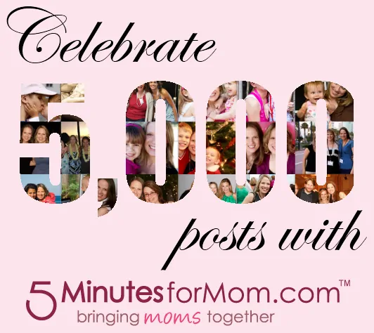 If you want to help us celebrate our 5,000 post, we would love it if you gave us a Stumble, Tweet, Pin, or Facebook Like. Thank you so very much! We really appreciate your support of 5 Minutes for Mom.