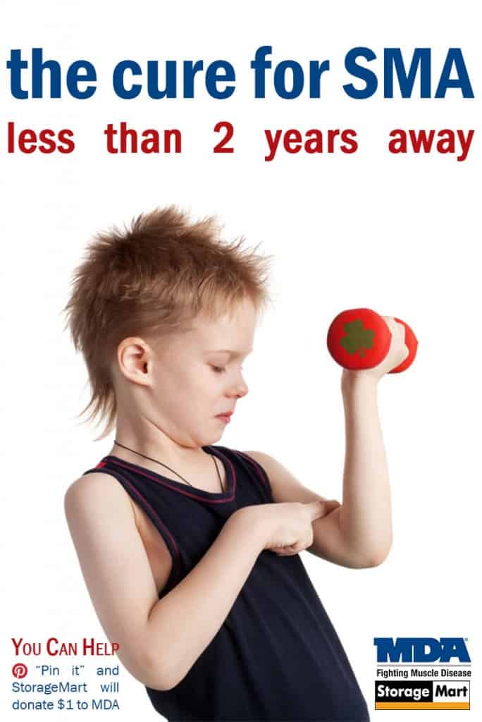 StorageMart has pledged to give $1, up to $5,000, to the MDA for every time the “Pin for a Cure†image is ‘pinned’ on Pinterest. Pinterest users can go here to ‘pin’ the image http://www.storage-mart.com/blog/charity-fundraisers/pin-for-a-cure-on-the-brink-of-curing-spinal-muscular-atrophy/ .