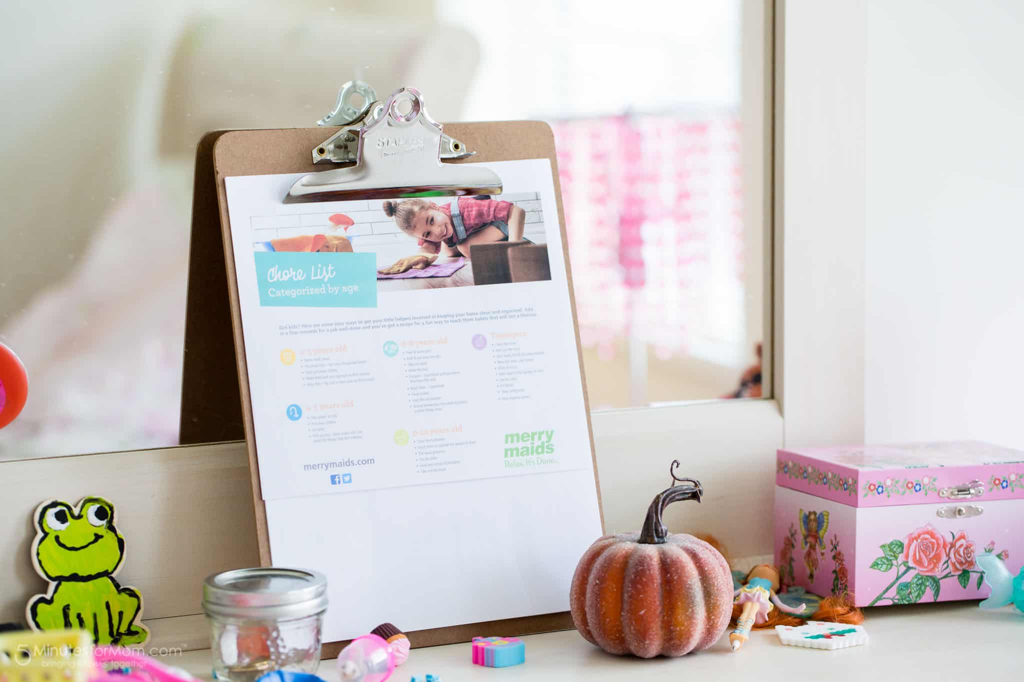Mary Ann Jernigan, Merry Maids expert, also suggests having each chore equal a dollar amount kids can earn and spend on their favorite things. “If kids stick to the chart and complete chores for a week, take them on a fun field trip.”