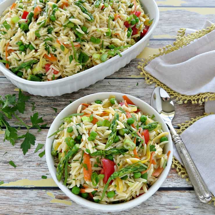 You will love how this healthy pasta salad recipe uses lots of fresh vegetables along with orzo and a delicious pasta salad vinaigrette.