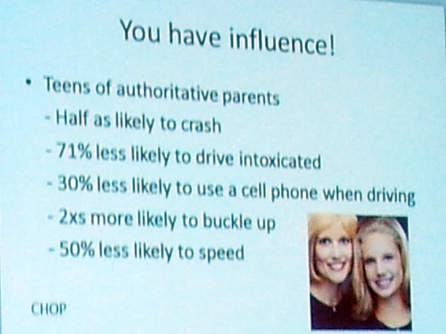 Those are scary statistics, and when you add distracted driving atop the inexperience of teens, the likelihood of crashing or other effects is that much greater. Â Fortunately, the conference didn’t simply focus on the negatives and statistics but gave plenty of advice on ways we can help teens become safer drivers.