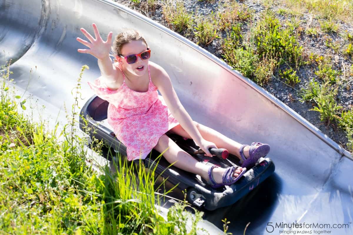 The Westcoaster Slide is a 315m luge style track that twists and turns down Blackcomb mountain. You control your speed with a hand brake and you lean your body into the turns.