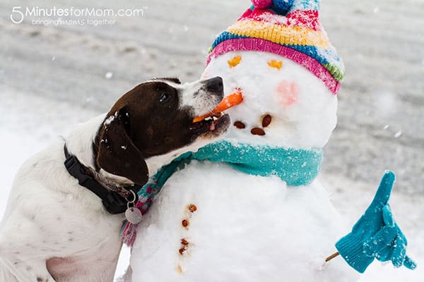 We finally got enough snow for a snowman! In fact, we had the best snowfall we have had in years. It was lovely. Our dog AJ loves the snow – but he loved our snowman the most.