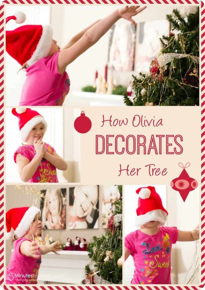 This week, Olivia helped decorate our Christmas tree, along with Susan’s girls, Julia and Sophia. (Don’t miss their fabulous kids Christmas craft as they turn extra tinsel into an easy holiday centerpiece.)