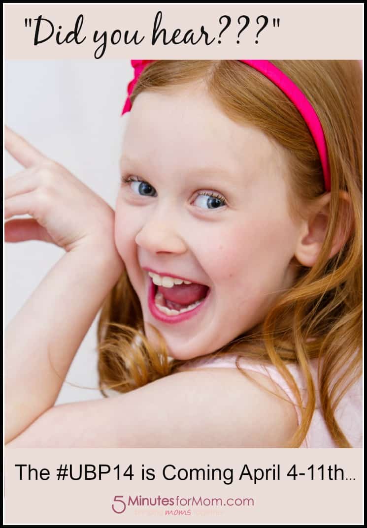 Also, remember to RSVP for the #UBP14 Google Hangout, Monday Apr 7 at 9pm Eastern and mark your calendar for the #UBP14 Twitter Party, Tuesday Apr 8 at 9pm Eastern.