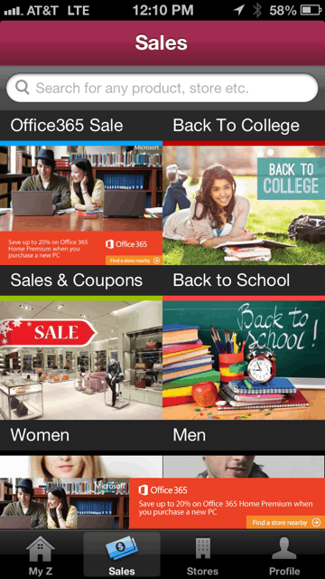 - searching by store, coupons and sales, or your favorites.